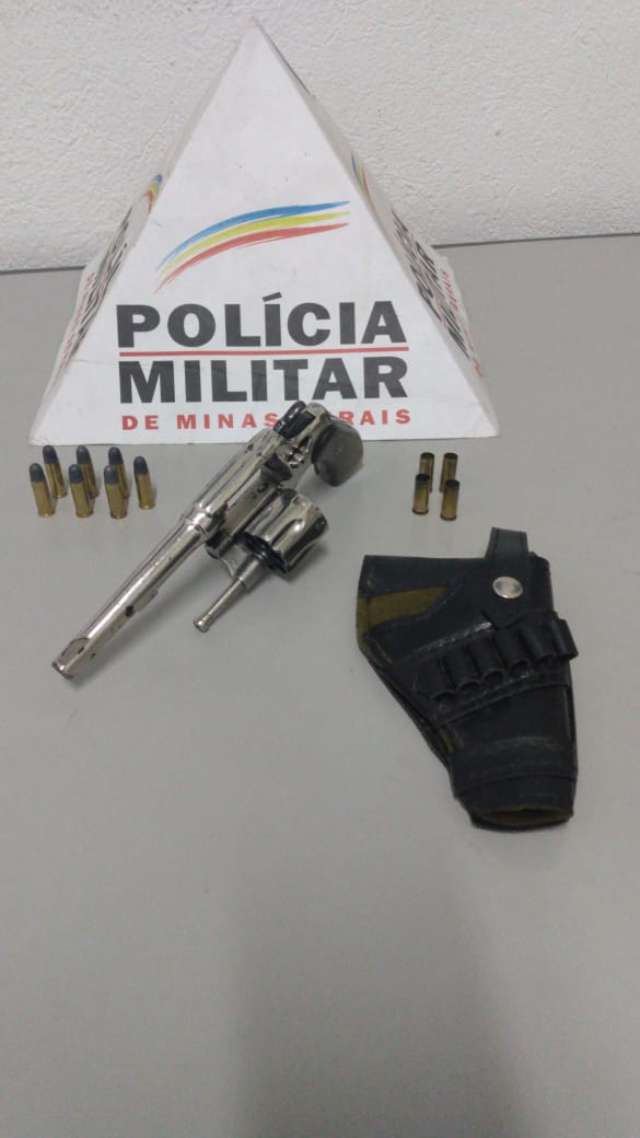 Durante patrulhamento, 02 pessoas relataram que foram ameaçadas por um homem alto,magro, trajando blusa preta e calça jeans e portava uma arma de fogo prateada do tipo revólver, o qual colocou uma das mãos pela grade do portão da chácara e mandavam as vítimas saírem daquele local, caso contrário as mataria; que tempo depois o autor efetuou 2 disparos de dentro da chácara.