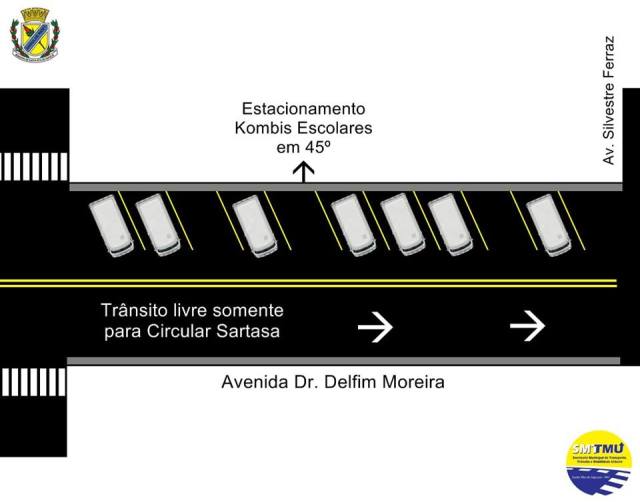 Do lado esquerdo da avenida sentido à Rua Silvestre Ferraz será usado para estacionamento em 45° das Kombis escolares.