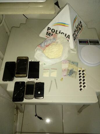 Além da droga foram apreendidas uma balança de precisão, 13 adesivos de símbolo “Ying-Yang” utilizado para identificar substâncias apreendidas em datas anteriores, uma motocicleta com a numeração do chassi e motor raspado e 6 celulares de procedências duvidosas.