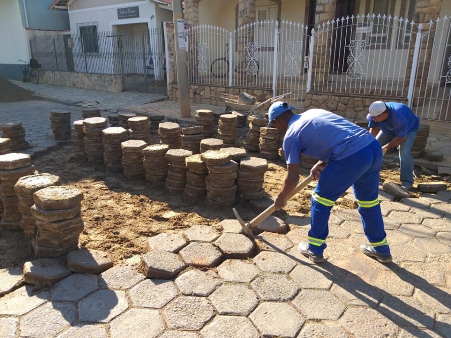 Troca de bloquetes quebrados nas ruas de Santa Rita