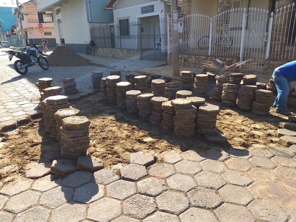 Troca de bloquetes quebrados nas ruas de Santa Rita