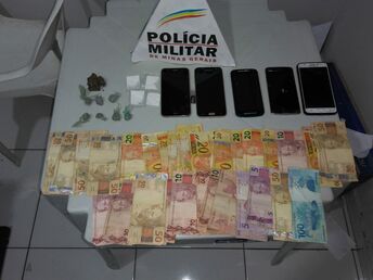 Em posse dos autores foram localizados 4 papelotes de cocaína e uma quantia de R$ 1.220,00 em moeda corrente, porém em diligências no interior da residência, foram localizadas ainda 6 buchas de maconha e uma bucha de tamanho maior da mesma substância, fracionadas para venda.