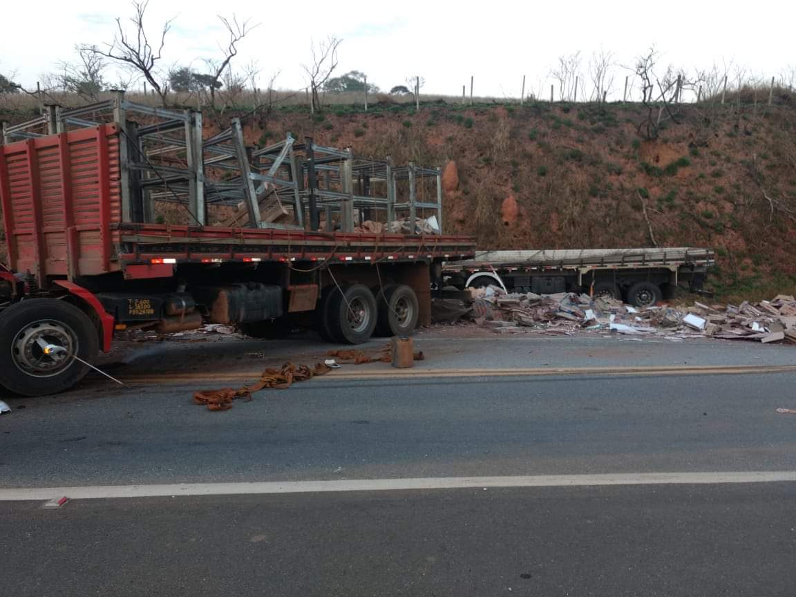 Batida entre dois caminhões deixa dois mortos e um ferido na BR-459