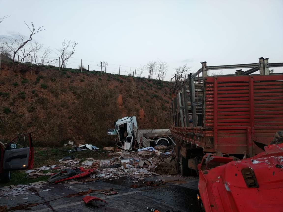 Batida entre dois caminhões deixa dois mortos e um ferido na BR-459