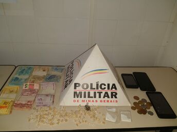 Na ação policial foram apreendidos 02 papelotes de cocaína, 126 pedras de crack, 01 porção de maconha, 03 celulares e cerca de R$1.284,00 (hum mil duzentos e oitenta e quatro reais) em dinheiro.