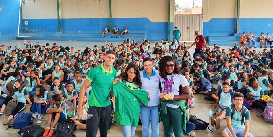 A praticante de Atletismo e medalhista de ouro nos Jogos Parapan-Americanos de Lima 2019, Izabela Campos, esteve presente e fez uma palestra motivacional para os alunos. Ela, que é deficiente visual, é uma das atletas contempladas pelo Programa Bolsa-Atleta e Bolsa-Técnico, que reforça a política de valorização do esporte praticada pela Sedese. “Foi muito legal levar para os alunos a vivência no movimento paralímpico porque muita gente não tem o conhecimento do que é esporte paraolímpico. Ver esse trabalho me deixou muito feliz, além de mais confiante de que os atletas que virão no futuro terão um conhecimento a mais do que eu tive no início”, conta.