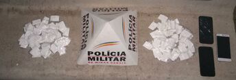 Na abordagem, nada de ilícito foi localizado com os suspeitos no primeiro momento, porém a PM, em contato com a genitora do rapaz, foi informada das denúncias e franqueou a entrada, permitindo a busca na residência, a qual foi localizado, num invólucro plástico preto, 126 porções de cocaína.