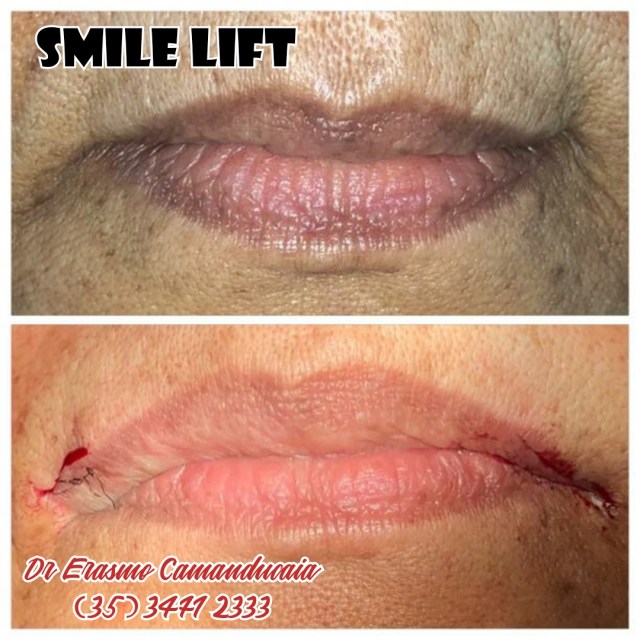 Também com o passar dos anos, com o envelhecimento a musculatura que sustenta os lábios vai perdendo a força e se tornando flácida. Com isso vem a queda do conto da boca. A cirurgia de smile lift levanta o canto da boca e devolve o aspecto jovial do sorriso.
