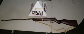 Os militares de posse das informações, imediatamente deslocaram para o local, onde na mata escutaram barulhos de conversas, na aproximação dos militares os cachorros de caça perceberam e alertaram os autores não sendo possível precisar quantos indivíduos eram, saíram em fuga pela mata, nas buscas foi localizado um saco contendo uma espingarda polveira Cal 28 com numeração raspada sendo apreendida e encaminhada para a Delegacia de Polícia.