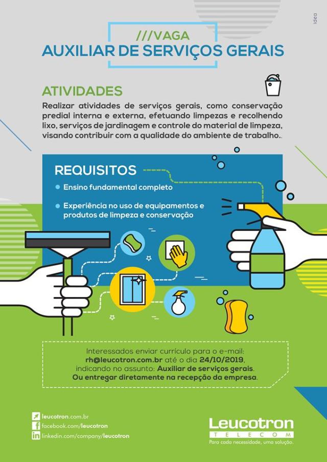 Oportunidade de Emprego – Auxiliar de Serviços Gerais