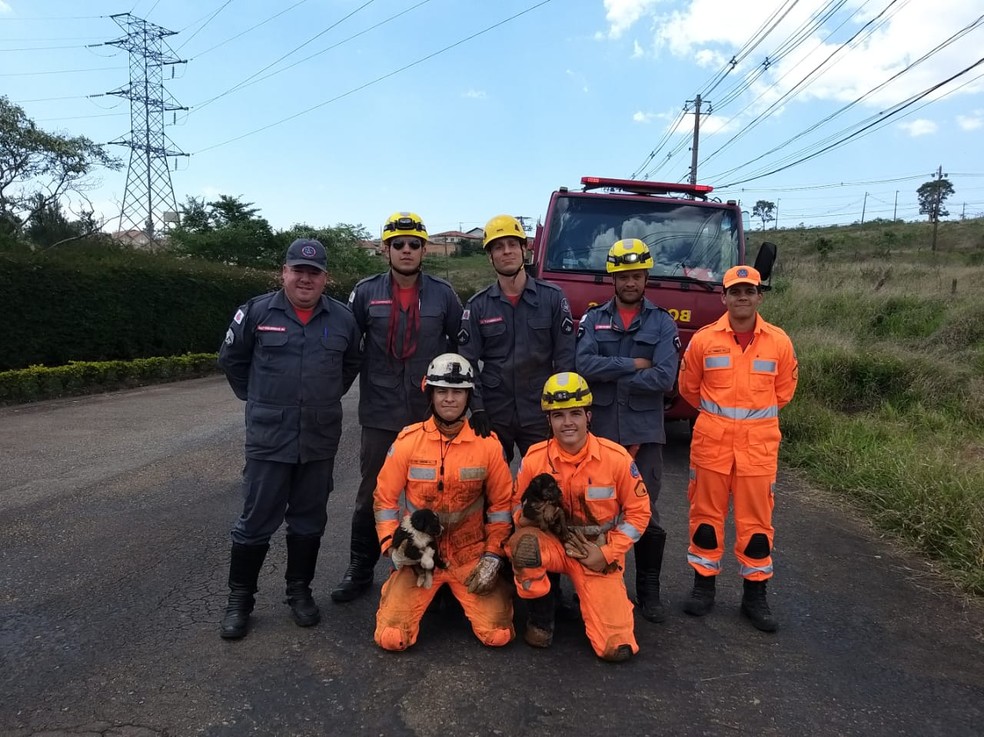 Um deles foi retirado por um dos militares, mas o outro precisou ser empurrado com jatos de água. Nenhum dos cachorros apresentava ferimentos. Todo o trabalho durou cerca de quatro horas.
