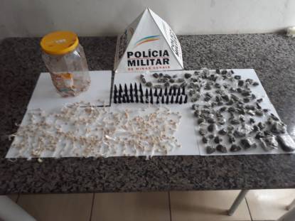 Os militares deslocaram até o local no Bairro Parque das Nações e encontraram 37 eppendorf de cocaína, 365 pedras de crack, 109 buchas de maconha e 5 tabletes com uma grama e meia cada.