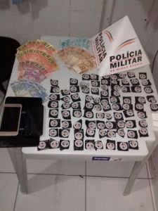 O autor que correu para os fundos da residência dispensou um objeto ao solo e quando verificado, foi constatado que se tratava de mais alguns papelotes de cocaína. Já no interior da residência, a guarnição localizou um Kit contendo 50 porções de cocaína, 35 papelotes da mesma substância espalhados em cima da cama e a quantia de R$2.358,00 em notas diversas.