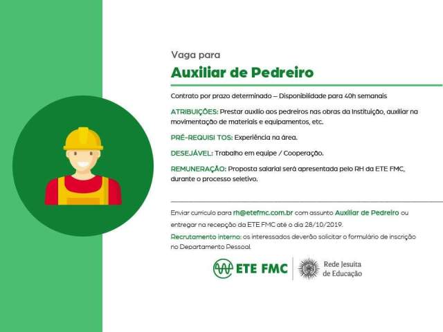 Oportunidade de Emprego – Auxiliar de Pedreiro