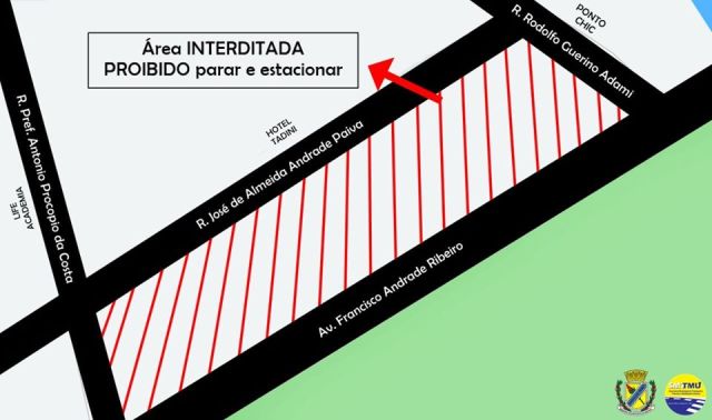 Em Santa Rita do Sapucaí, a Secretaria Municipal de Transporte Trânsito e Mobilidade Urbana comunica que a partir de segunda feira dia 11, a área municipal onde se monta parque na Festa de Santa Rita será usada como canteiro de obras, pela empresa que fará a instalação da passarela de pedestres na ponte ao lado do Country Clube.