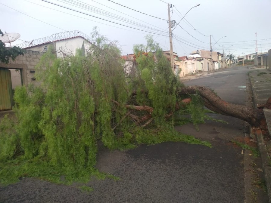 Vendaval derruba árvores e deixa bairros sem energia elétrica em Varginha