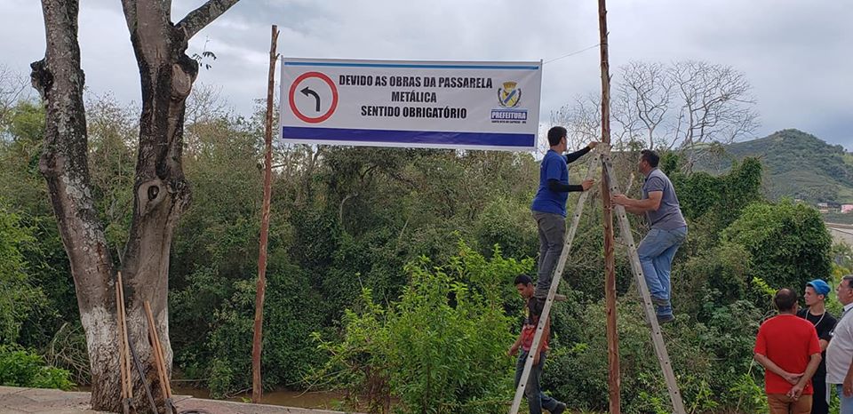 Sinalizações referentes às alterações no trânsito que irão ocorrer em decorrência do início das obras da passarela metálica para pedestres ao lado da ponte foram colocadas