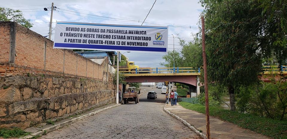 Sinalizações referentes às alterações no trânsito que irão ocorrer em decorrência do início das obras da passarela metálica para pedestres ao lado da ponte foram colocadas