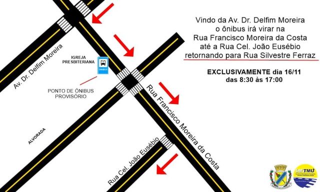 Em Santa Rita do Sapucaí, a Secretaria Municipal de Transporte Trânsito e Mobilidade Urbana comunica que em virtude do fechamento da Rua Silvestre Ferraz no sábado dia 16, das 8h30 às 17h00, o circular fará outro trajeto.