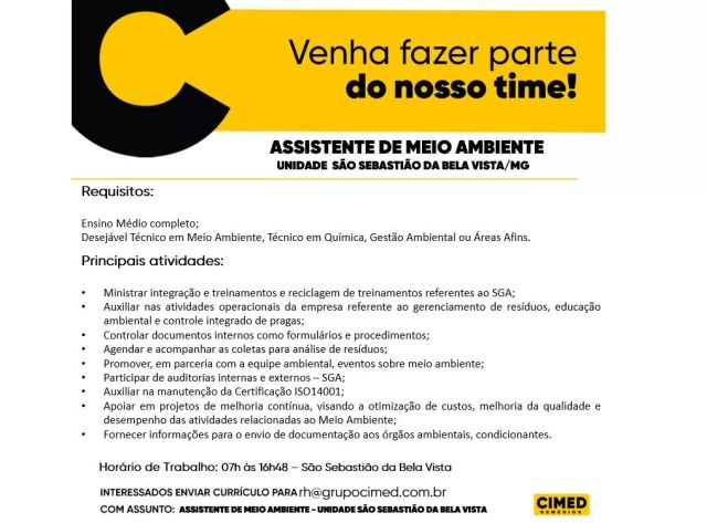 Oportunidade de Emprego – Assistente de Meio Ambiente