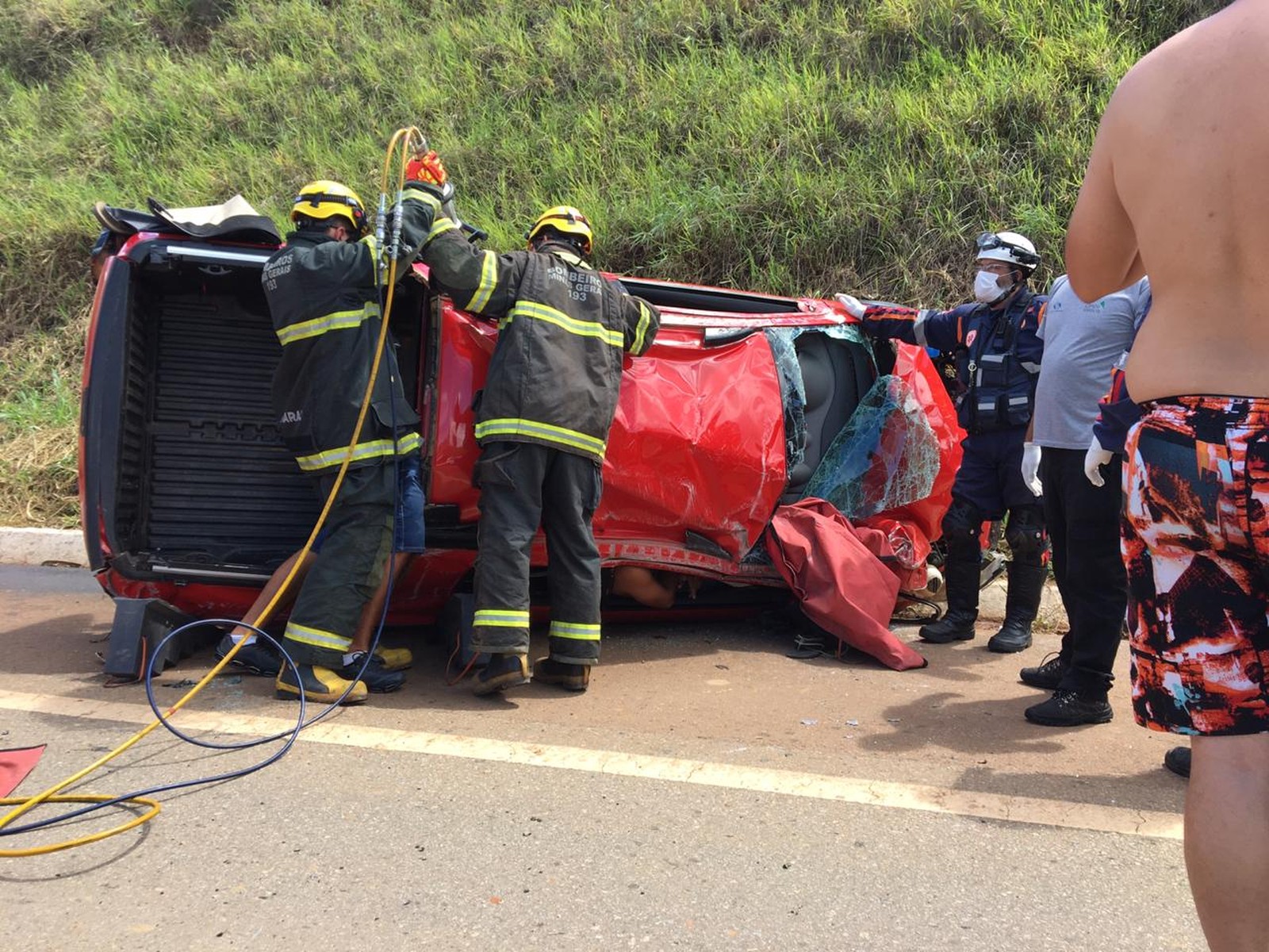 Homem de 27 anos é socorrido de helicóptero após capotar caminhonete na BR-265