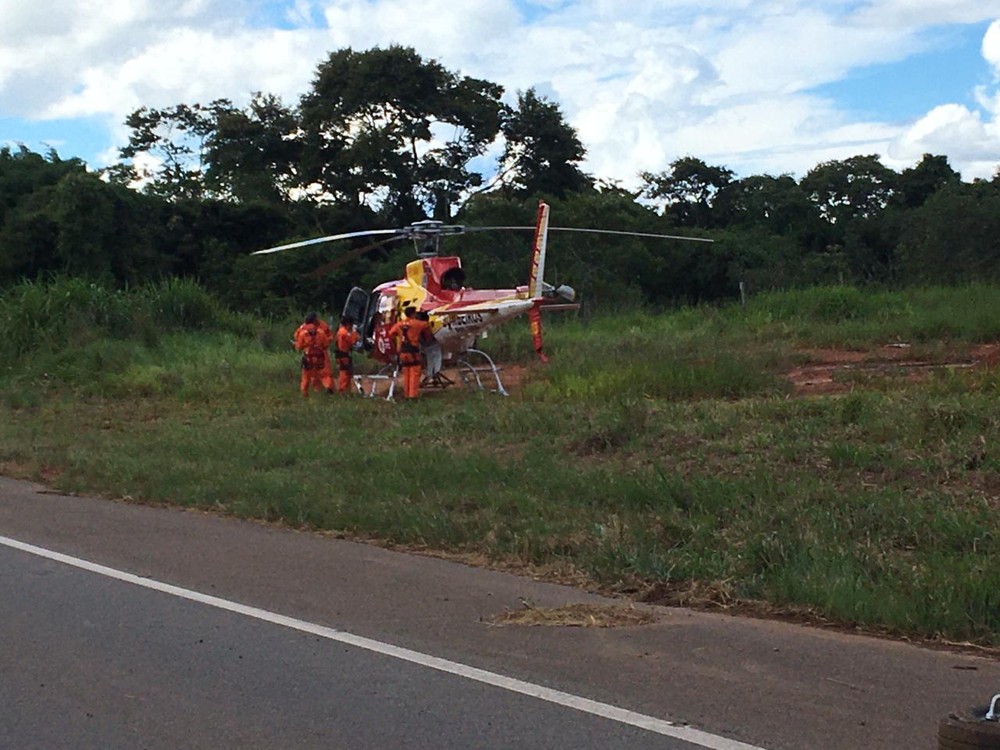 Homem de 27 anos é socorrido de helicóptero após capotar caminhonete na BR-265