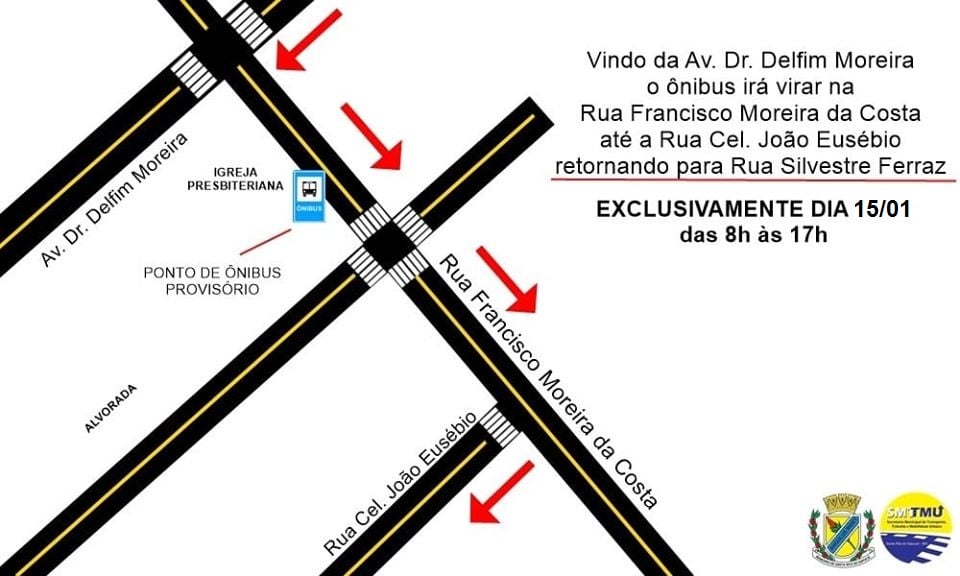 Em virtude do fechamento,, o circular fará outro trajeto: Virará a esquerda na Rua Cel Francisco Moreira da Costa, tendo um ponto em frente à Igreja Presbiteriana, virará a direita na Rua Cel João Euzébio e a esquerda na Rua Silvestre Ferraz, conforme a imagem abaixo.