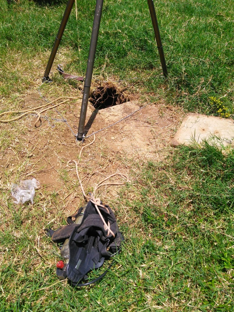 Bombeiros retiram vítima que caiu em cisterna