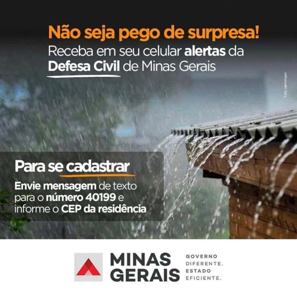 Não seja pego de surpresa! Receba em seu celular alertas da Defesa Civil de MG