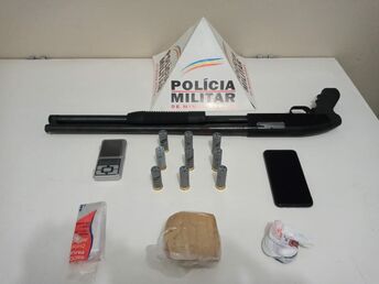 Diante do exposto, o autor foi preso por posse ilegal de arma de fogo e tráfico de drogas e encaminhado com o material apreendido para a delegacia de Polícia Civil.