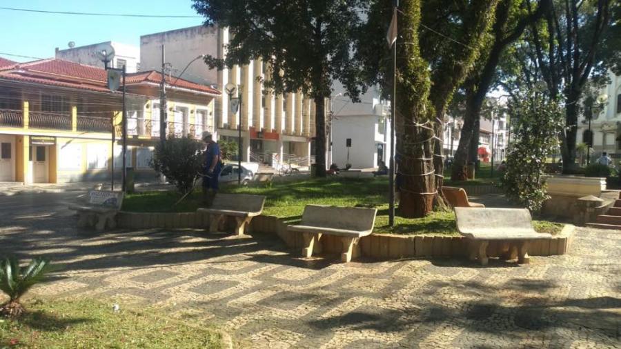 Prefeitura realiza serviço de jardinagem na Praça Santa Rita