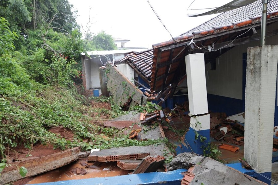 Chuva forte alaga ruas e derruba muros em bairros de São Lourenço
