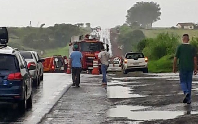 Segundo o Corpo de Bombeiros, por volta de 15h30, um caminhão que seguia sentido Itaú de Minas / Passos derrapou na pista e bateu em um barranco. A carroceria tombou e acabou atingindo um motoqueiro que vinha atrás.