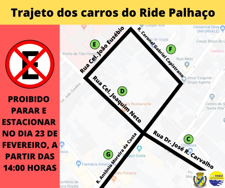 Trajeto dos carros alegóricos do Bloco Ride Palhaço no domingo, dia 23 de Fevereiro
