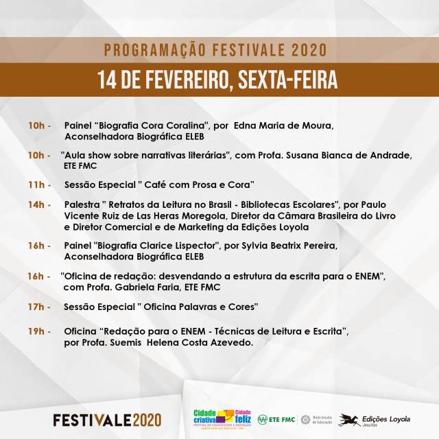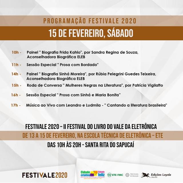 FESTIVALE – II Festival do Livro do Vale da Eletrônica, de 13 a 15 de fevereiro, na ETE, Santa Rita do Sapucaí