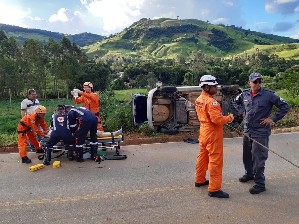 Um homem de 23 anos foi socorrido pelo helicóptero Arcanjo, do Corpo de Bombeiros, após o carro dele capotar na MGC-383, em Cristina. O acidente aconteceu na tarde de sábado(29).