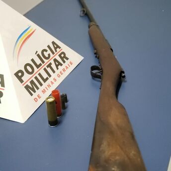 Os militares deslocaram ao local e prenderam o autor e durante buscas na residência localizaram 01 espingarda e 04 munições que foram apreendidas.