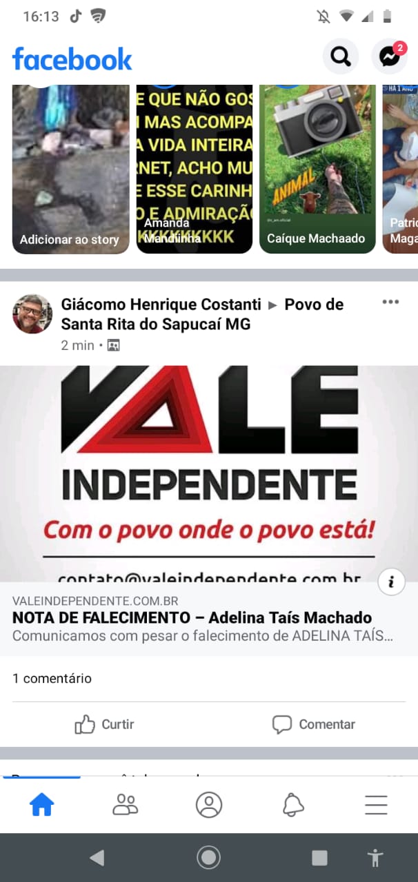 Na data de hoje(06), um perfil do facebook, provavelmente falso, entrou em contato com o Jornal Eletrônico “Vale Independente” noticiando um falecimento. Após apuração, ficou constatado que se tratava de informação falsa. O autor forneceu ao jornal informações com o único objetivo de disseminar conteúdo incorreto, causando por consequência, infundado temor a terceiros.