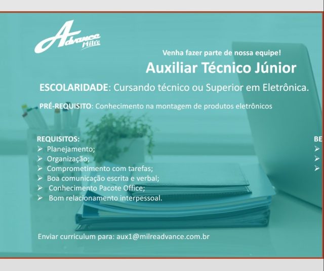 Oportunidade de Emprego – Auxiliar Técnico Júnior