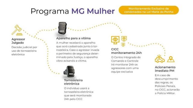 O governador Romeu Zema participou, nesta segunda-feira (9/3) – semana em que se celebra o Dia Internacional da Mulher -, do lançamento de mais uma ferramenta de enfrentamento ao ciclo da violência contra a mulher no estado: o programa MG Mulher. Coordenado pela Secretaria de Estado de Justiça e Segurança Pública (Sejusp), por meio de três eixos de atuação, o projeto irá garantir o monitoramento exclusivo e 24 horas dos homens investigados pela Lei Maria da Penha que utilizam tornozeleira eletrônica, fortalecerá e ampliará a rede de apoio às vítimas e estudará este fenômeno criminal.