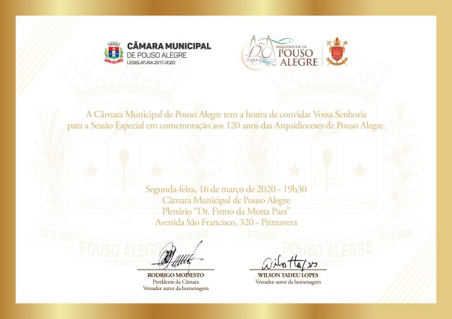 Sessão Especial – 120 anos Arquidiocese de Pouso Alegre