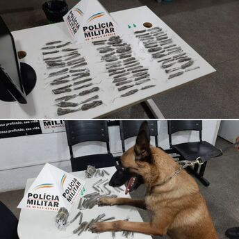 Os adolescentes estavam em atitude suspeita, e ao avisarem os policiais esconderam algo no mato. Durante a abordagem, com o apoio da cadela Eva, foram encontradas as seguintes drogas: