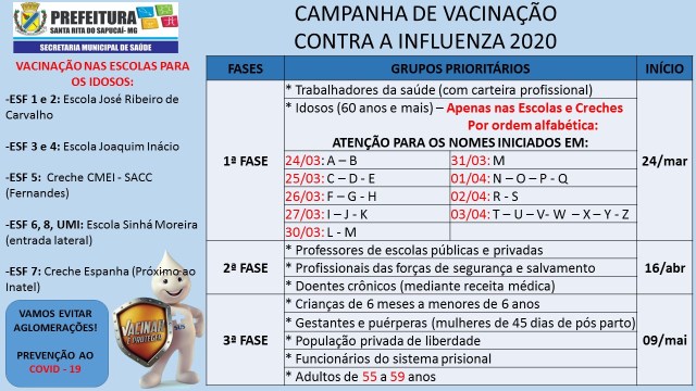 Horários e locais de vacinação contra gripe em Santa Rita do Sapucaí