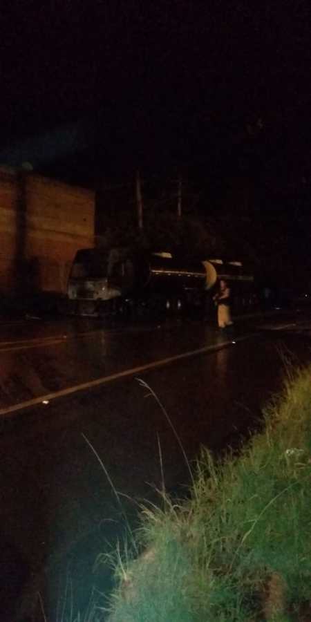 URGENTE – Caminhão pega fogo após acidente em Santa Rita