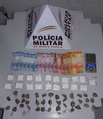 Os policiais conseguiram alcançar e abordar os autores, que foram submetidos a busca pessoal, sendo encontrada com o primeiro autor, de 23 anos, 19 porções de cocaína e R$ 34,00 em moeda corrente, já com o segundo autor, de 20 anos, somente foi localizada uma quantia de R$ 30,00 em dinheiro.