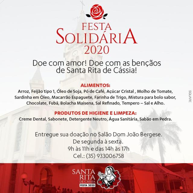 Este ano, a festa em homenagem à padroeira, Santa Rita de Cássia, será dentro de nossos corações!
