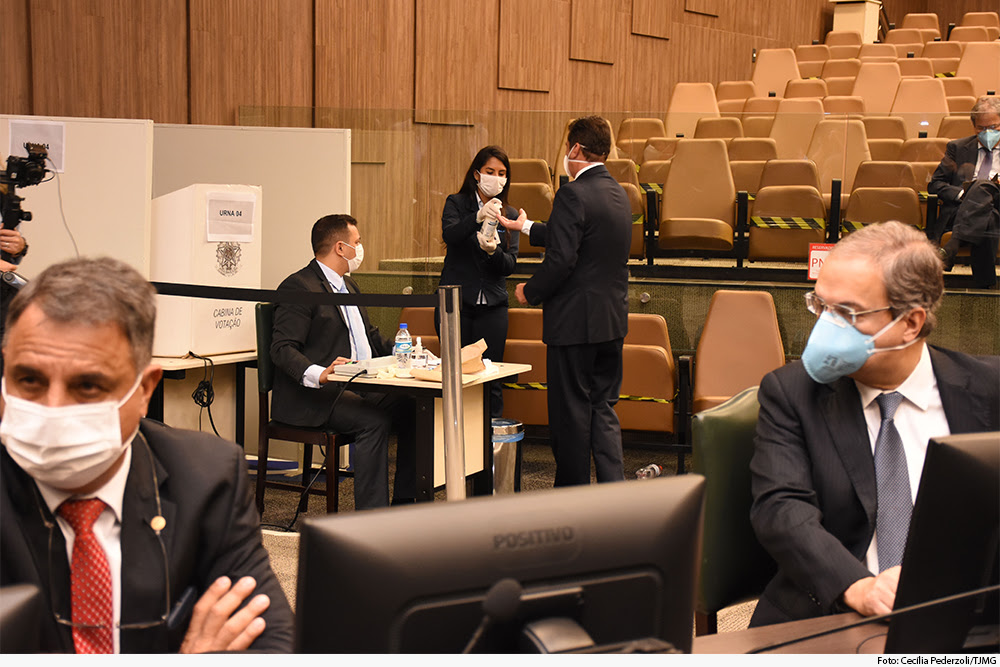 Às 14h04 o presidente Missias declarou abertas as votações, que ocorreram em cinco urnas cedidas e parametrizadas pelo Tribunal Regional Eleitoral de Minas Gerais (TRE). Por volta das 15h15 as votações foram encerradas. Mesmo com a pandemia, o Tribunal registrou presença de 134 desembargadores e apenas quatro ausências, fato comemorado pelo presidente Nelson Missias.