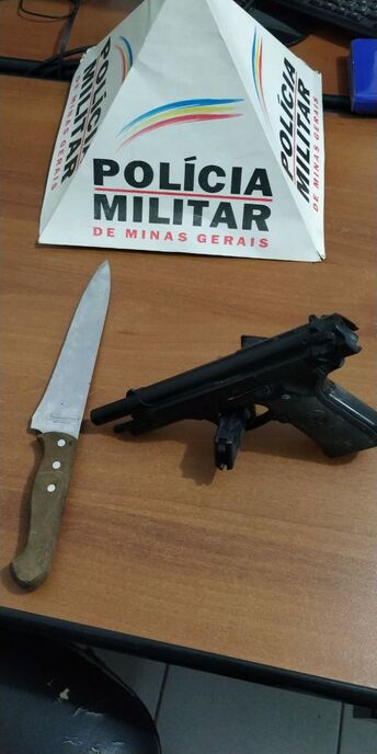 O militar de imediato chamou apoio, e em um ato de prevenção, com segurança, procedeu a abordagem. Neste momento o autor tentou se desfazer de uma réplica de pistola 380 e de uma faca.