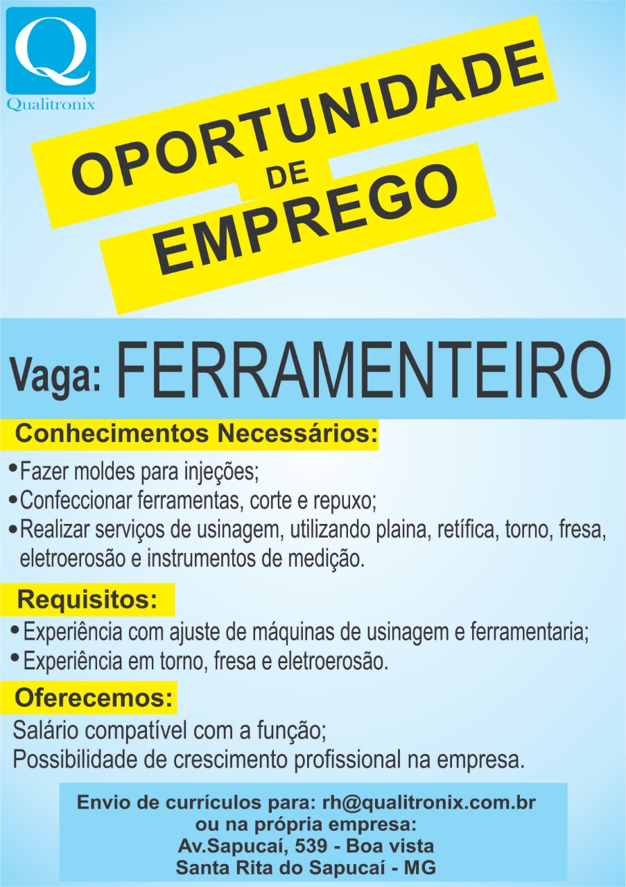 Oportunidade de Emprego – Ferramenteiro