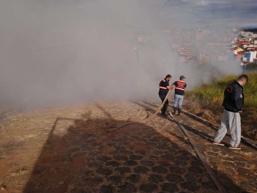 Defesa Civil combate incêndio em pasto